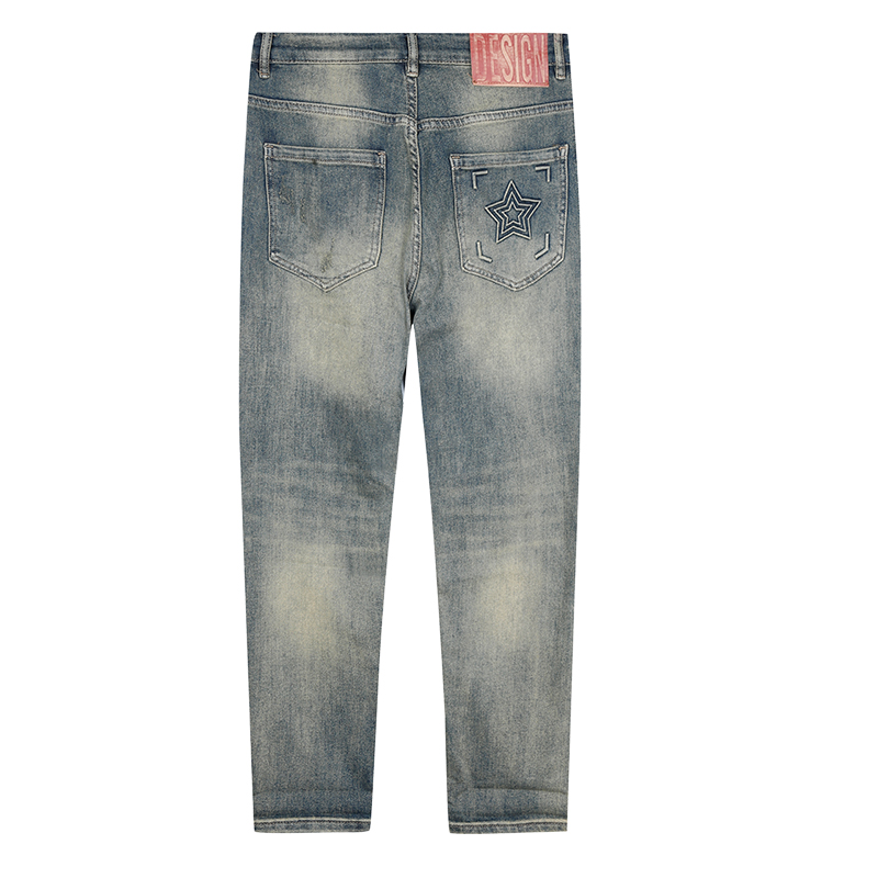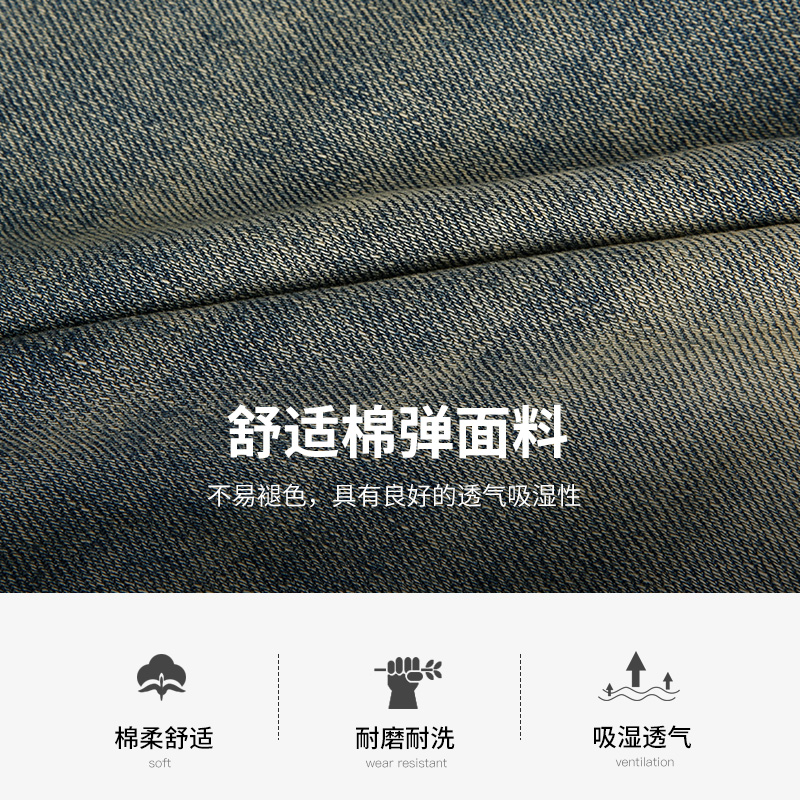 才子男装猫须水洗牛仔裤男2025夏季新款复古修身弹力时尚休闲长裤