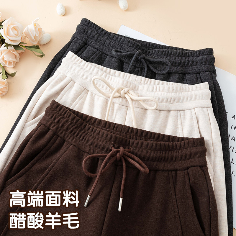 高端醋酸羊毛糯米裤女2025年秋冬加绒显瘦休闲窄版垂顺阔腿直筒裤