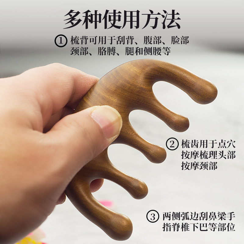 清仓!檀木梳子五齿头皮经络梳头部按摩梳头疗梳小梳子便携五齿梳