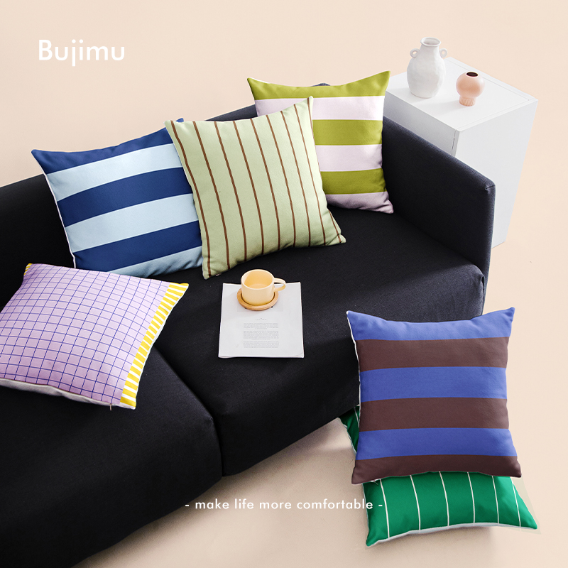 简约几何抱枕北欧现代客厅沙发靠垫条纹多巴胺彩色靠枕汽车靠背套