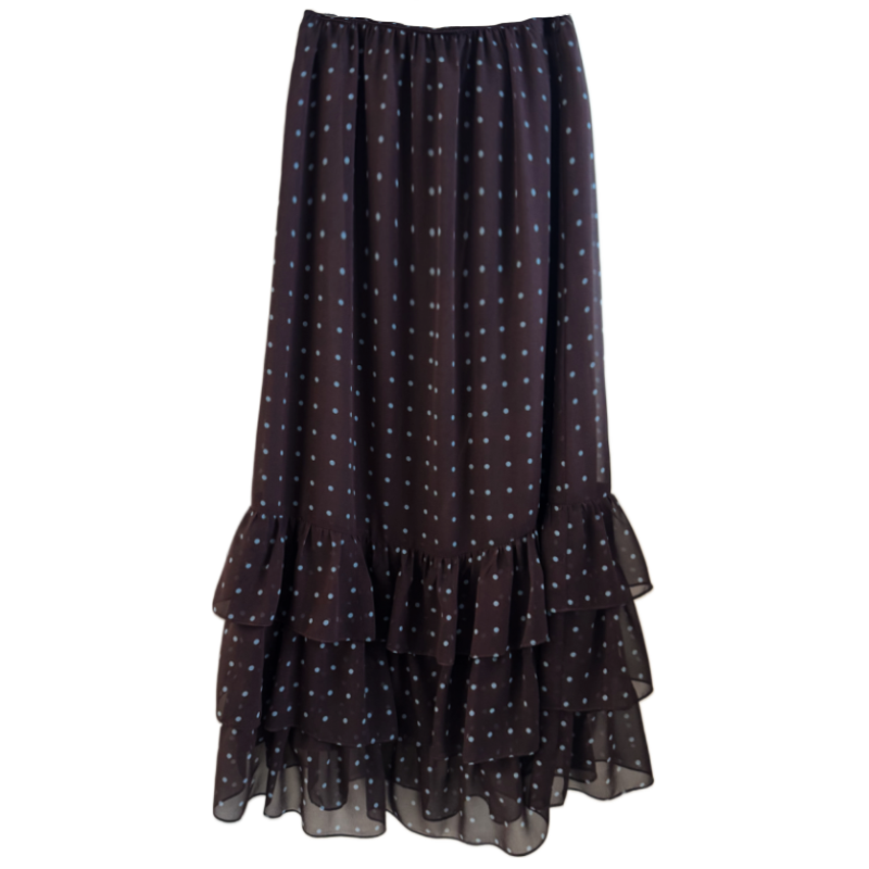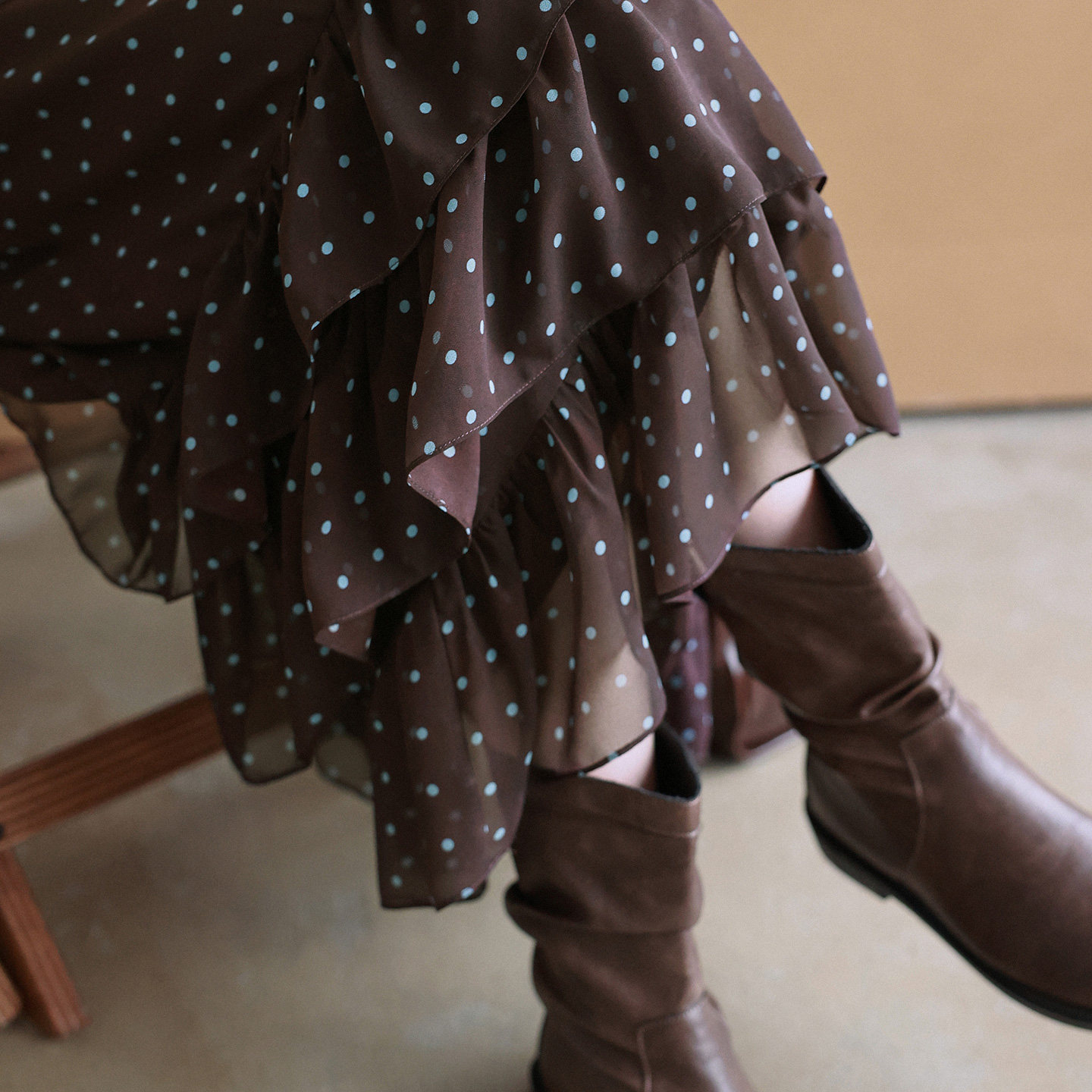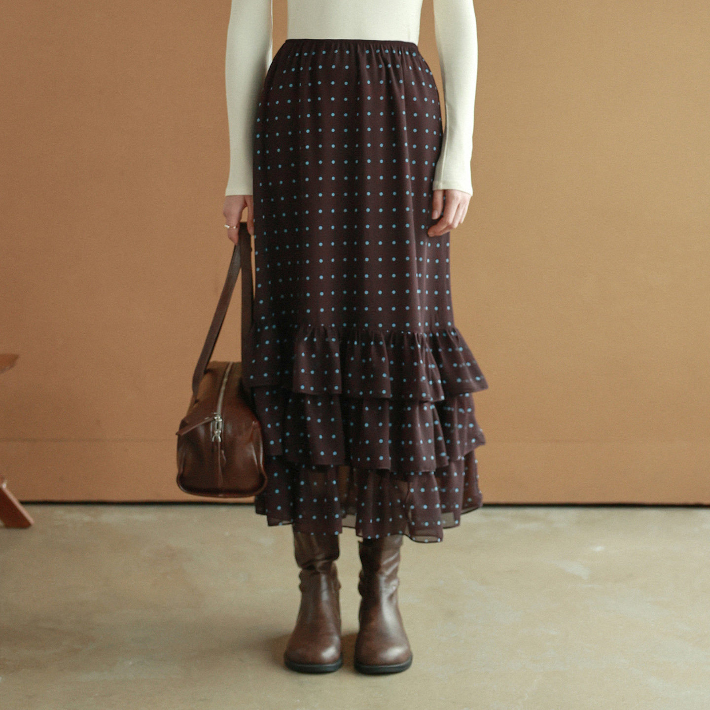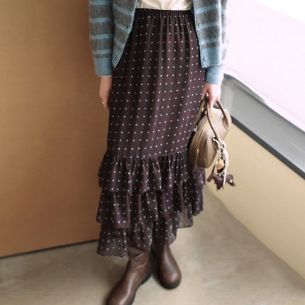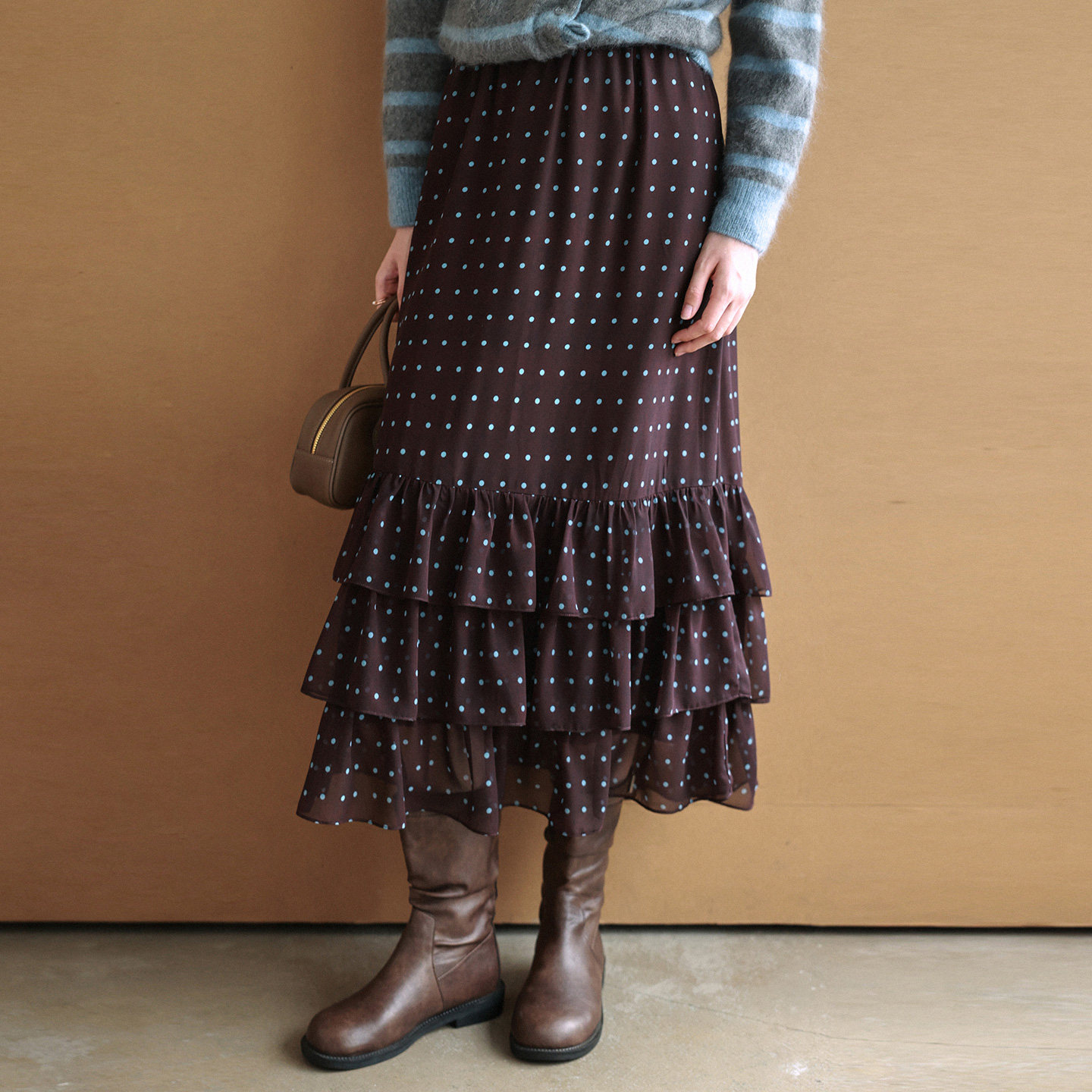 相对纶/温暖绒里/波点法式枣红松紧腰秋冬鱼尾八分长雪纺半身裙