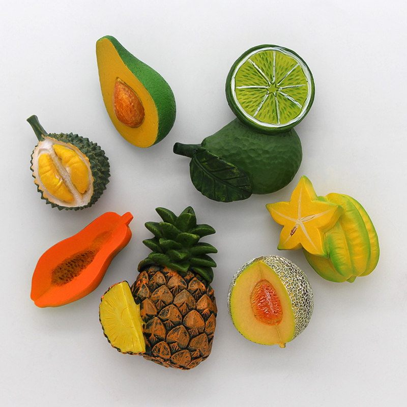 仿真水果冰箱贴3d菠萝山竹牛油果木瓜草莓榴莲樱桃杨桃家居装饰品
