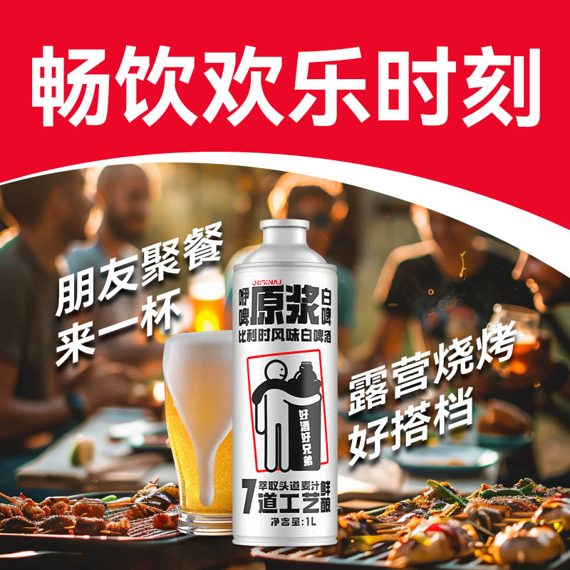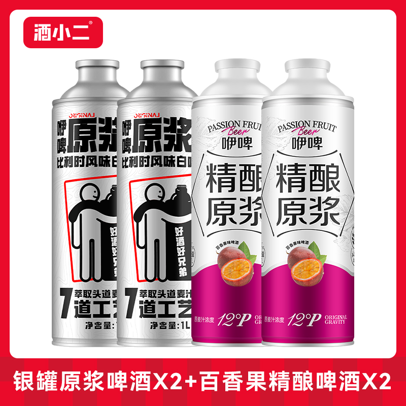酒小二 咿啤精酿原浆啤酒12度1L大容量4罐白啤银罐比利时风味酒水