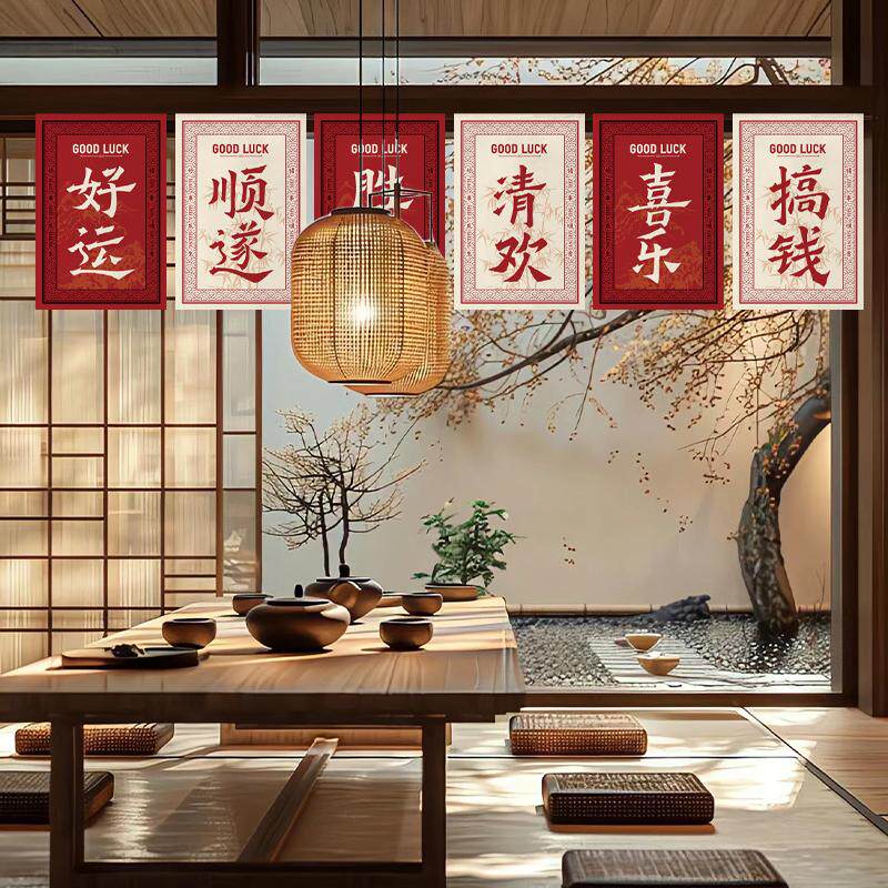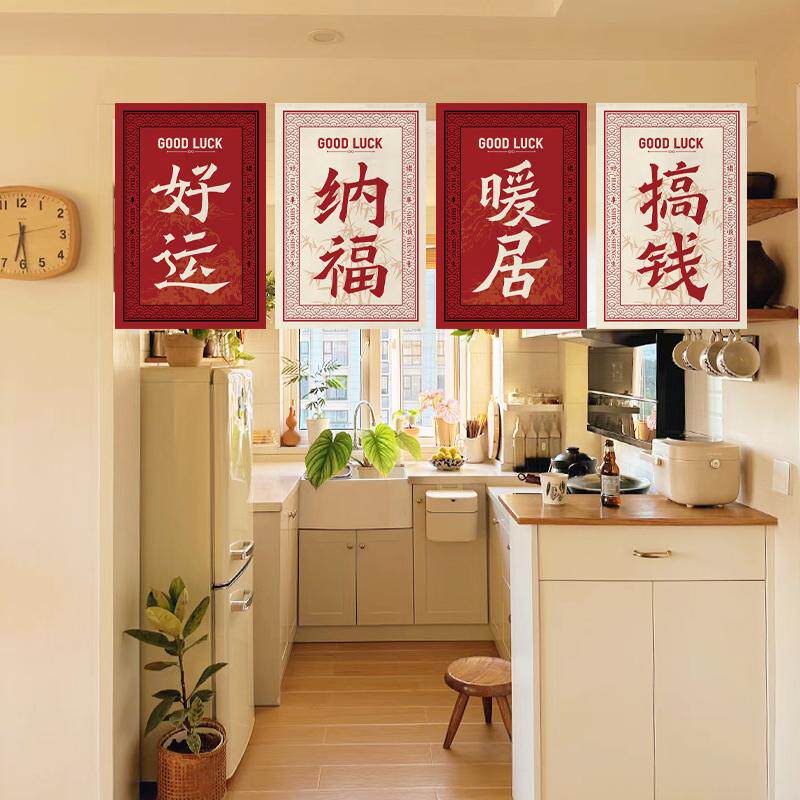 中式喜庆新年文字定制门头装饰挂帘吊旗厨房隔断半帘窗户短帘门帘