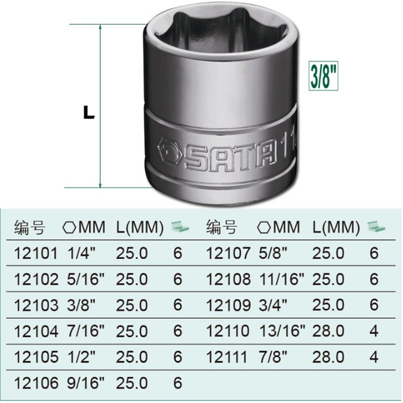 世达工具10mm系列3/8寸英制六角中飞套筒套头加长头子12101 12201