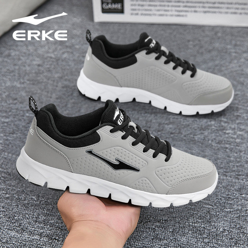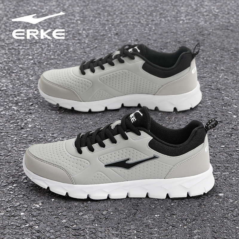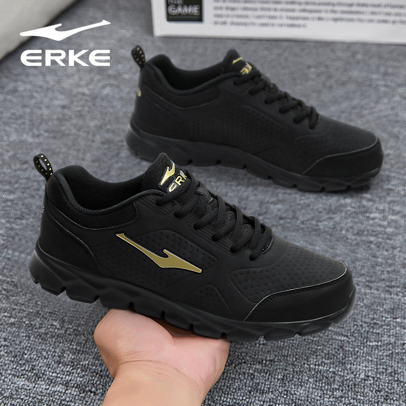 鸿星尔克男鞋运动鞋冬季皮面减震耐磨轻便休闲黑色百搭跑步鞋子男