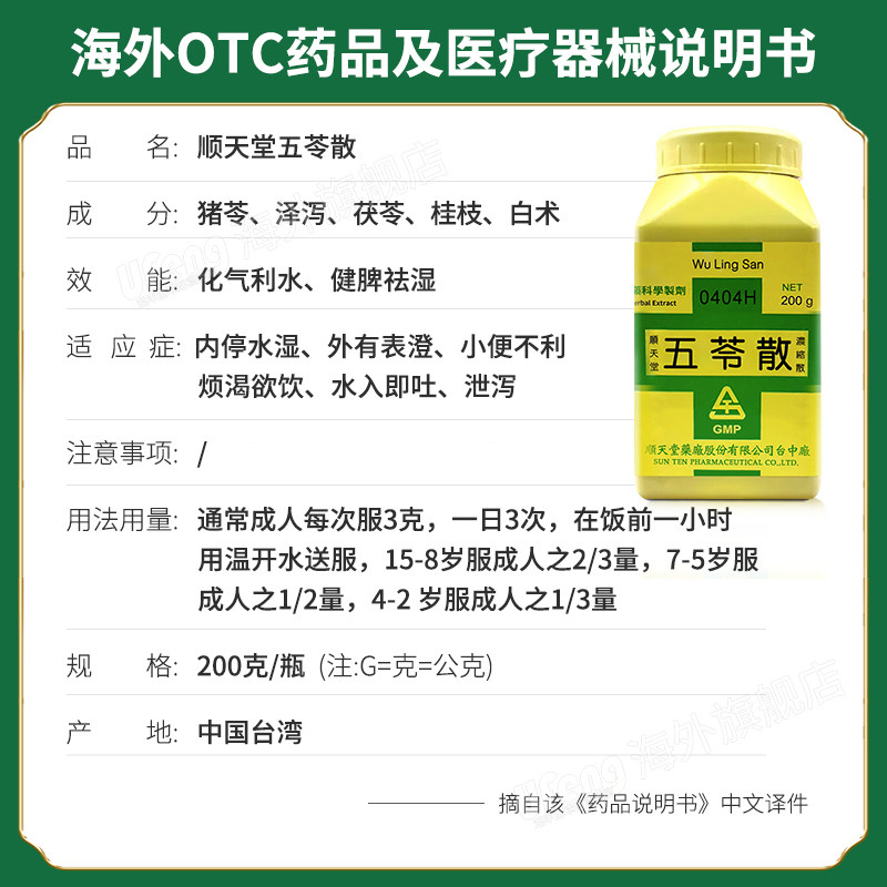 台湾顺天堂五苓散化气利水健脾祛湿内停水湿小便不利烦渴欲饮泄泻