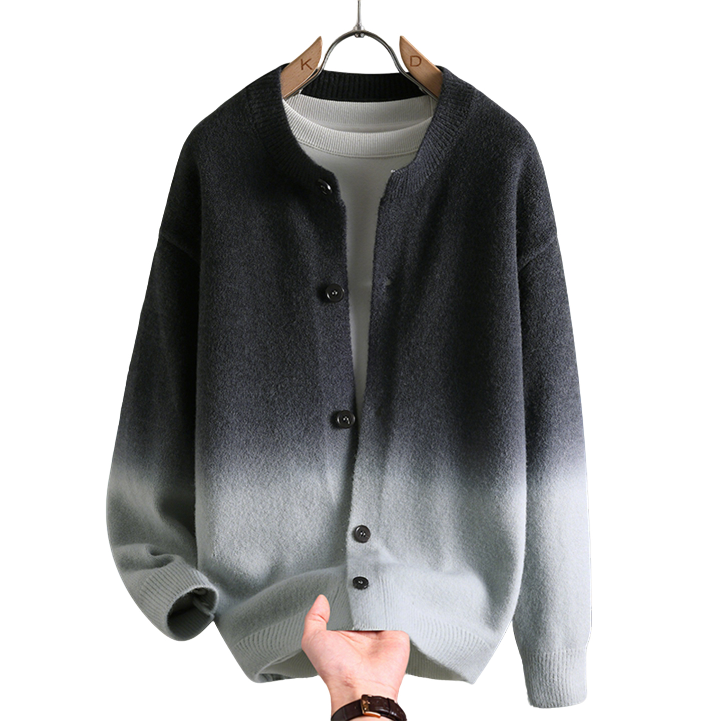 渐变色毛衣男秋季新款高级感肌理感针织衫男开衫外套男装休闲上衣