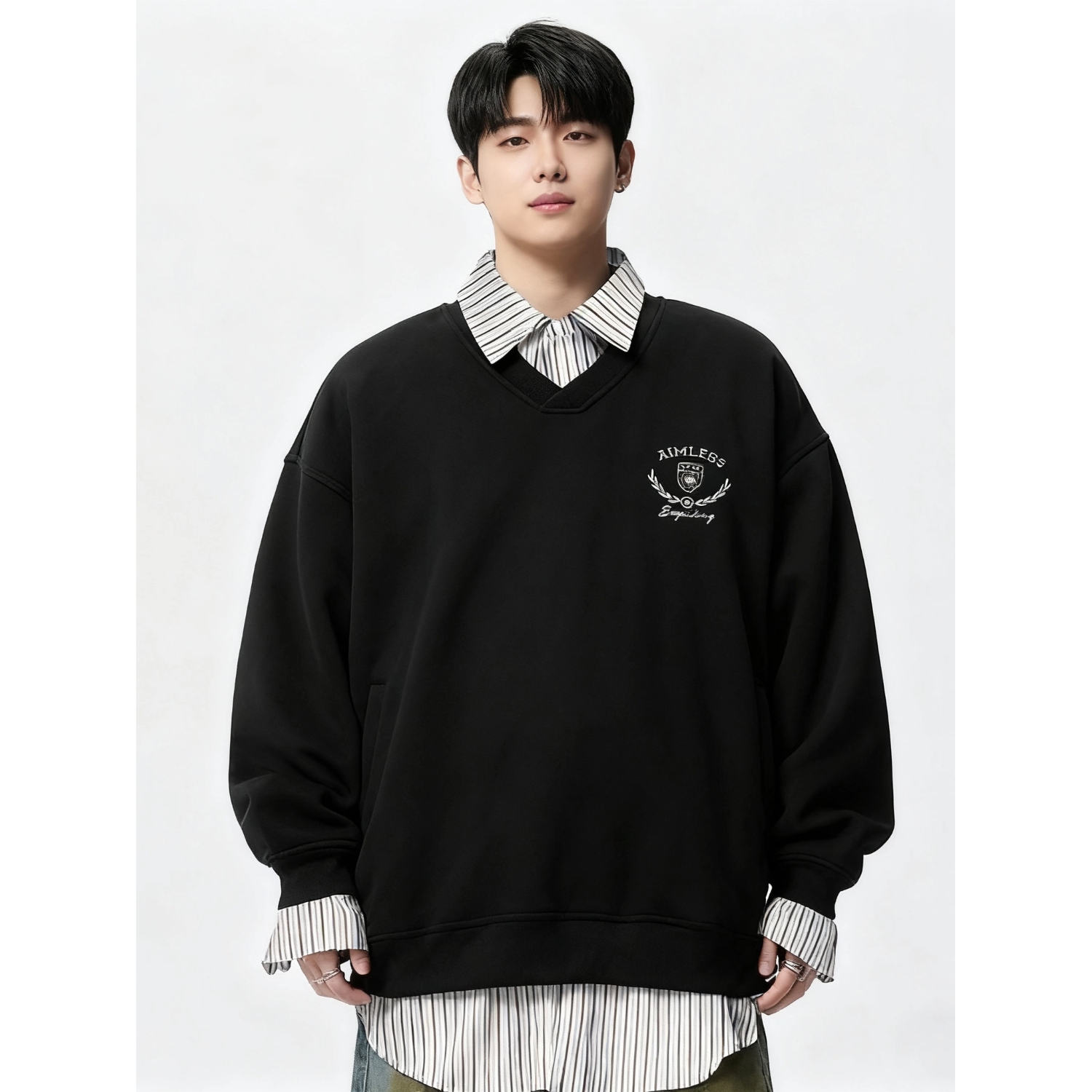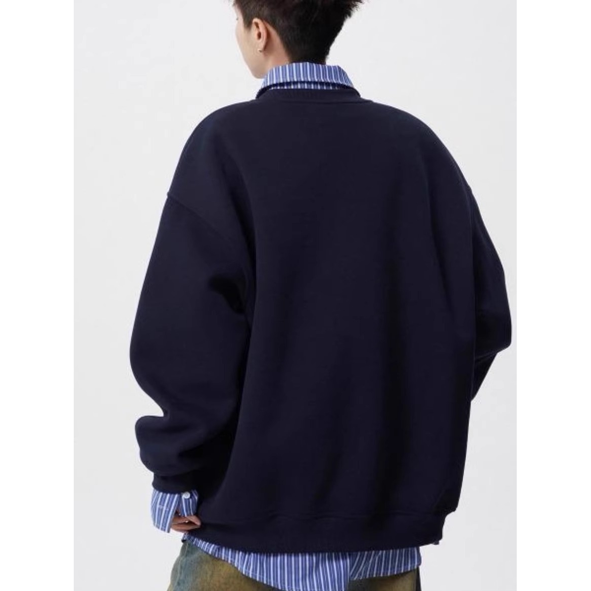 秋季大码卫衣翻领假两件宽松上衣加肥加大polo衫胖子特大长袖t恤