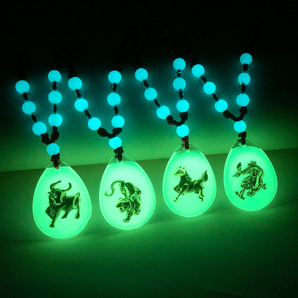 夜光十二生肖属相男生女款项链儿童本命年红绳挂坠龙虎猴猪蛇吊坠