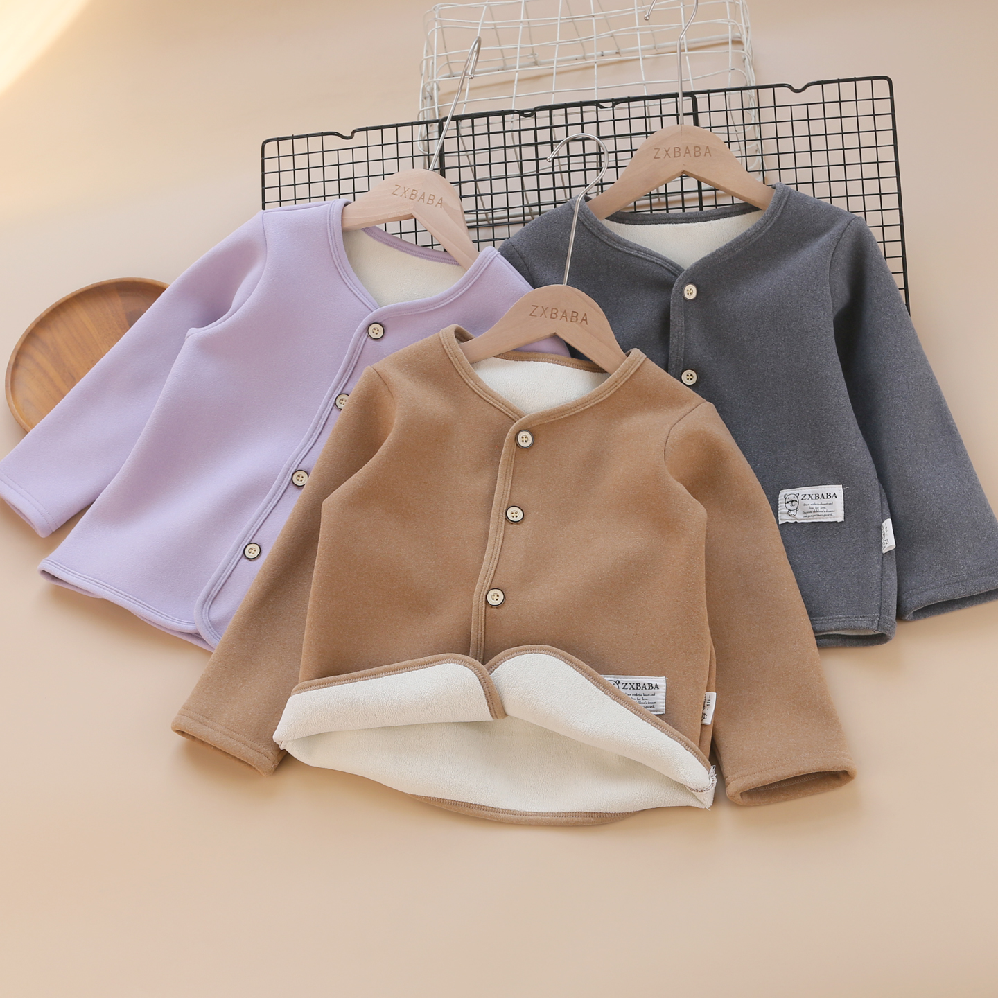 校服神器儿童加绒加厚开衫小外套男女童内搭保暖德绒棉袄学生上衣