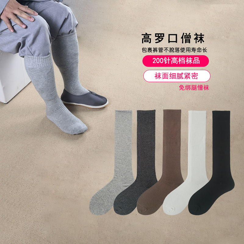 唯正春秋季免绑腿僧人僧袜长筒灰色系师父吸汗棉袜黄色和尚长袜子