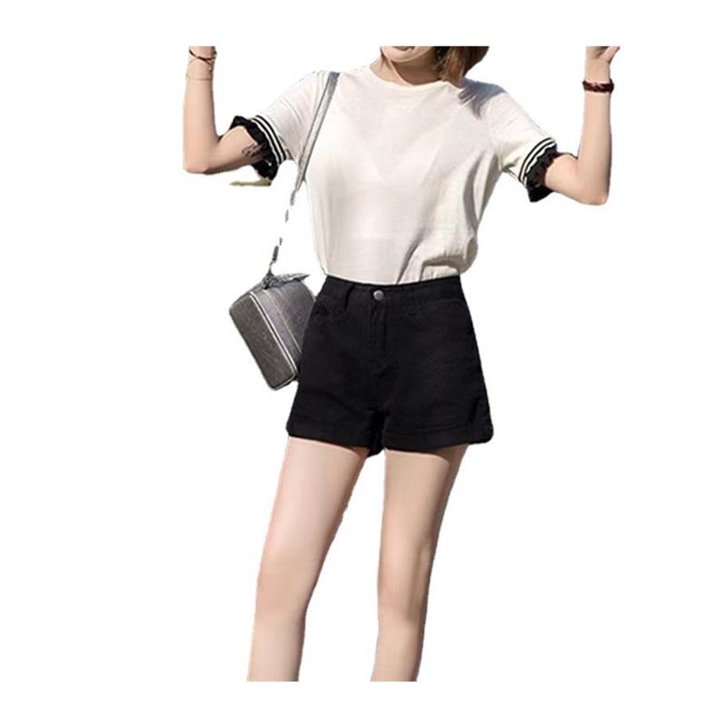 高腰黑色牛仔短裤女夏季学生卷边宽松显瘦a字阔腿裤热裤子韩版潮