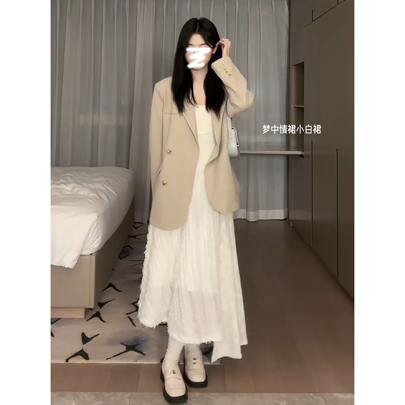 早秋穿搭套装2025秋季女装今年流行漂亮西装外套吊带连衣裙两件套