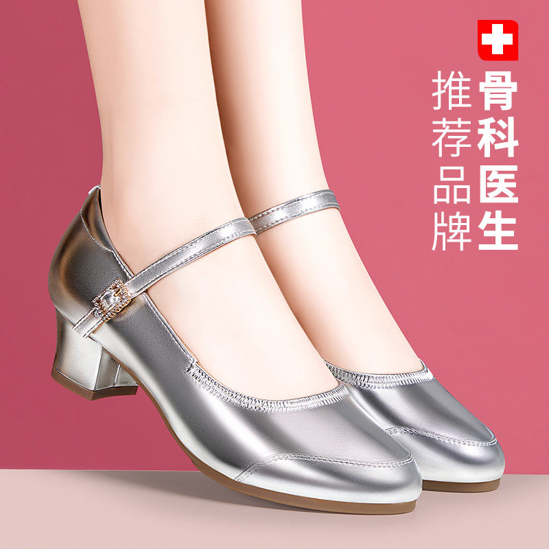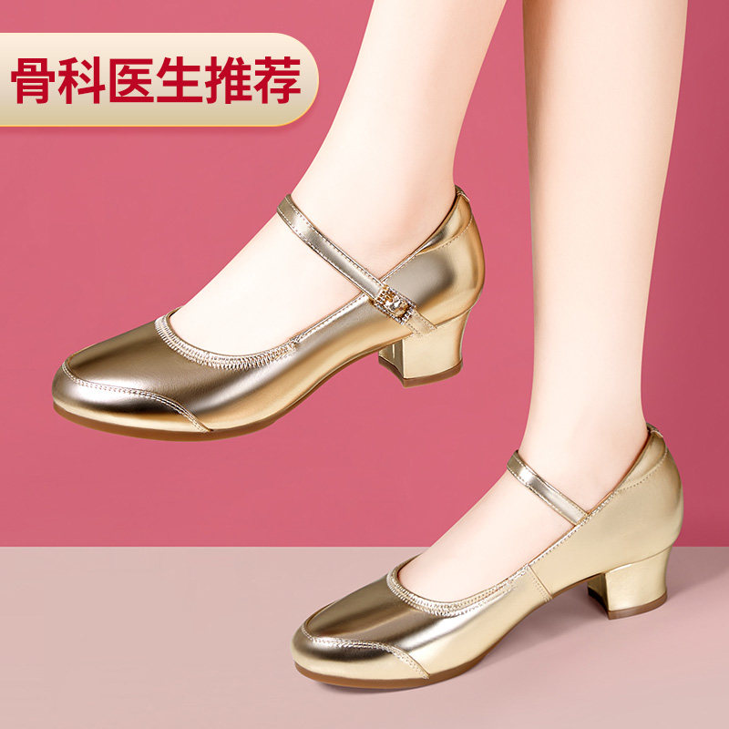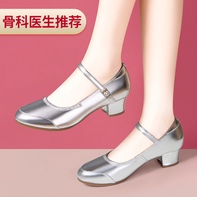 四季成人跳舞鞋广场舞鞋女软底中跟跳舞鞋现代交谊舞鞋银色舞蹈鞋