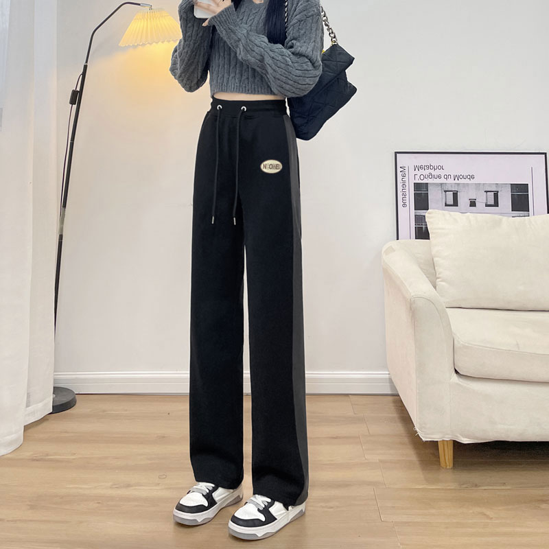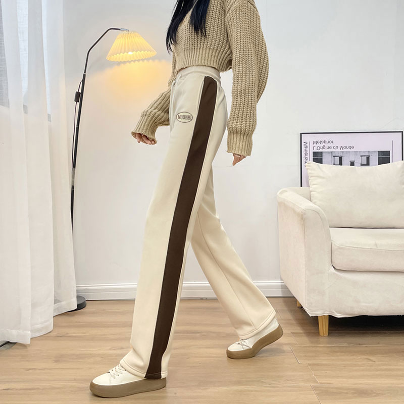 青少年女大童秋冬加绒加长版裤子初中高中学生宽松阔腿运动休闲裤