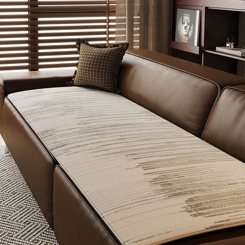 夏季冰丝沙发垫布凉感防滑凉席垫2024新款中古高级感直排坐垫盖巾