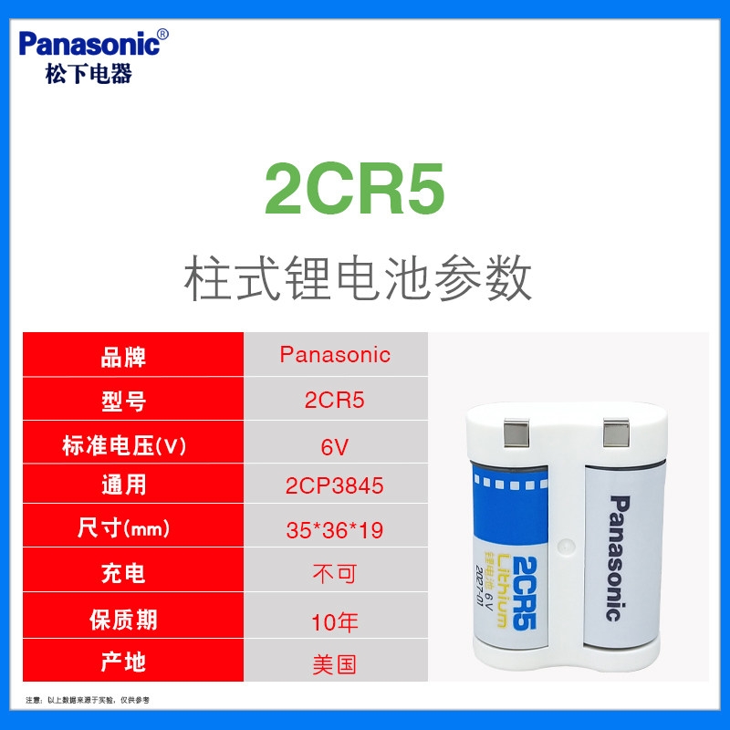 松下2CR-5W锂电池6V 佳能eos5 50 55胶卷胶片摄像机照相机2CP3845