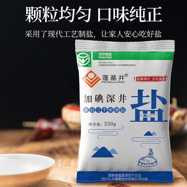 加碘深井盐250g袋装含碘食用盐细盐食用盐巴家用炒菜调味品精制盐