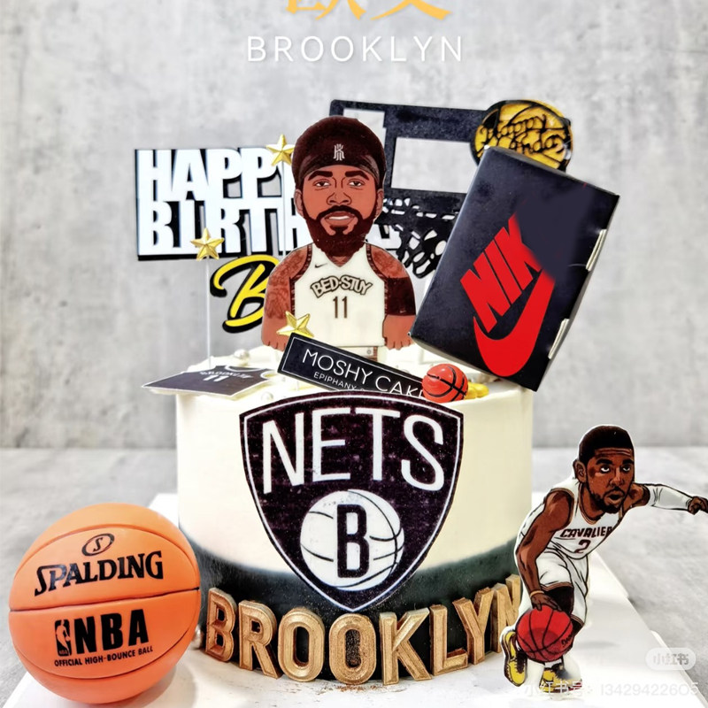 欧文NBA篮球明星主题糯米纸生日蛋糕装饰甜品台烘焙用纸定制打印