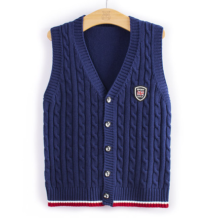 儿童男童中大童全棉开衫毛衣背心针织衫马甲坎肩春秋新款马夹单排