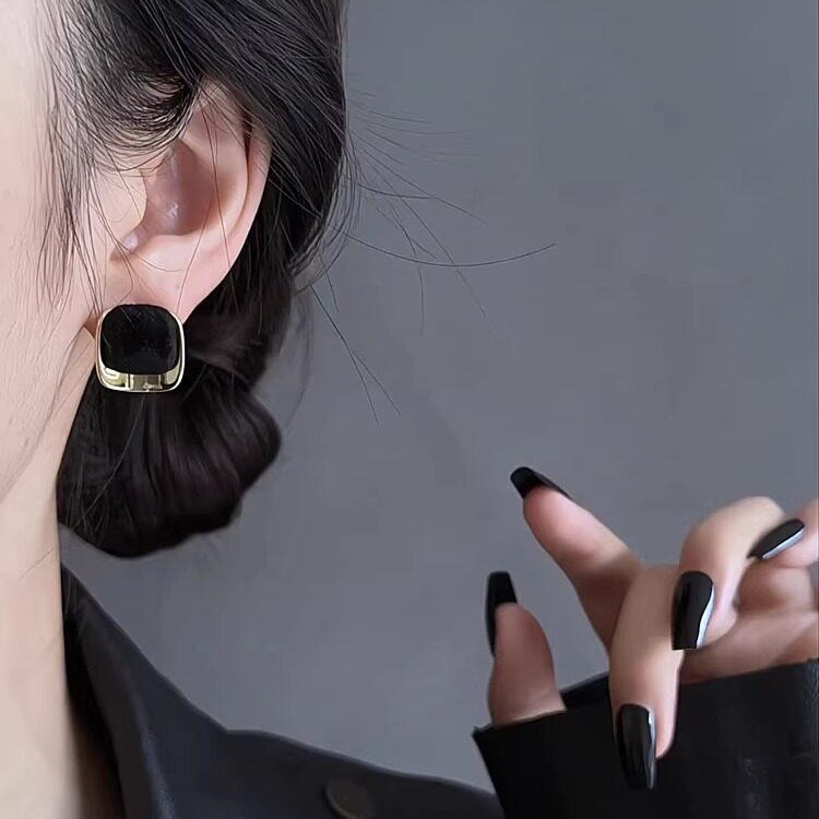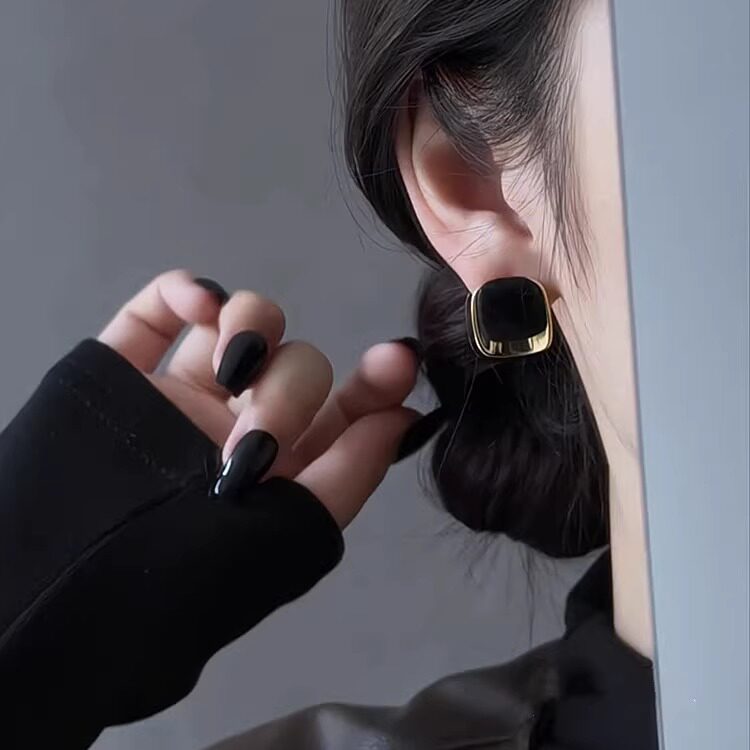 法式复古高级感黑金撞色方形耳钉