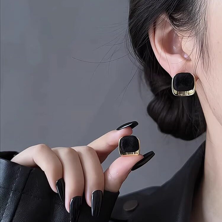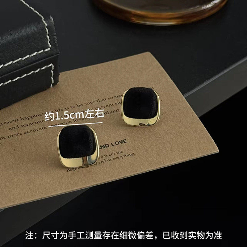 法式复古高级感黑金撞色方形耳钉轻奢小众设计感时尚气质百搭耳环