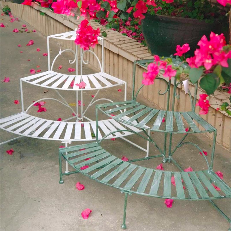 极速户外花园做旧铁艺p折叠阶梯花架置物架欧式阳台庭院转角多层