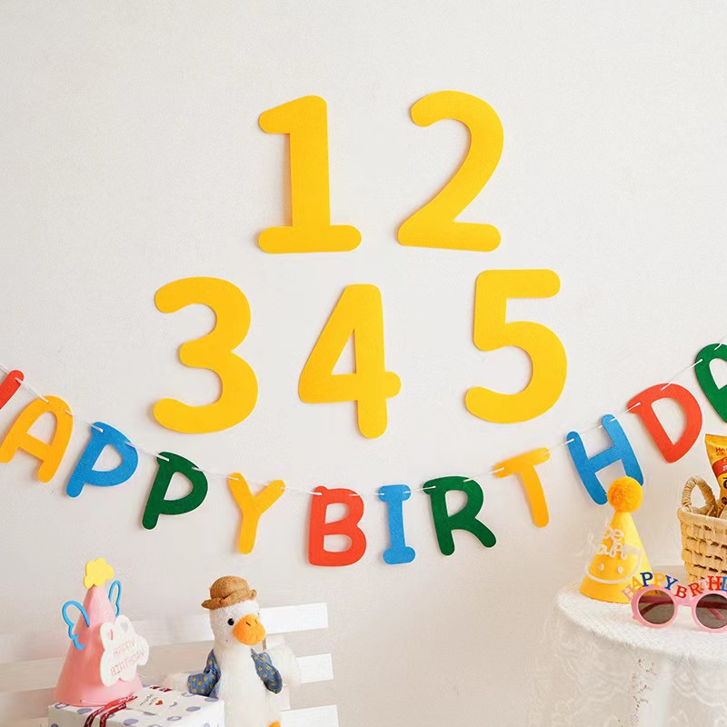 ins复古数字森系毛毡生日快乐宝宝周岁百天拍照背景墙装饰布置