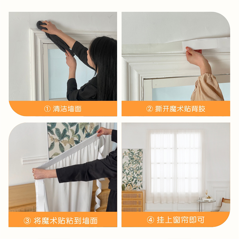 本无家纺魔术贴粘贴安装白纱帘