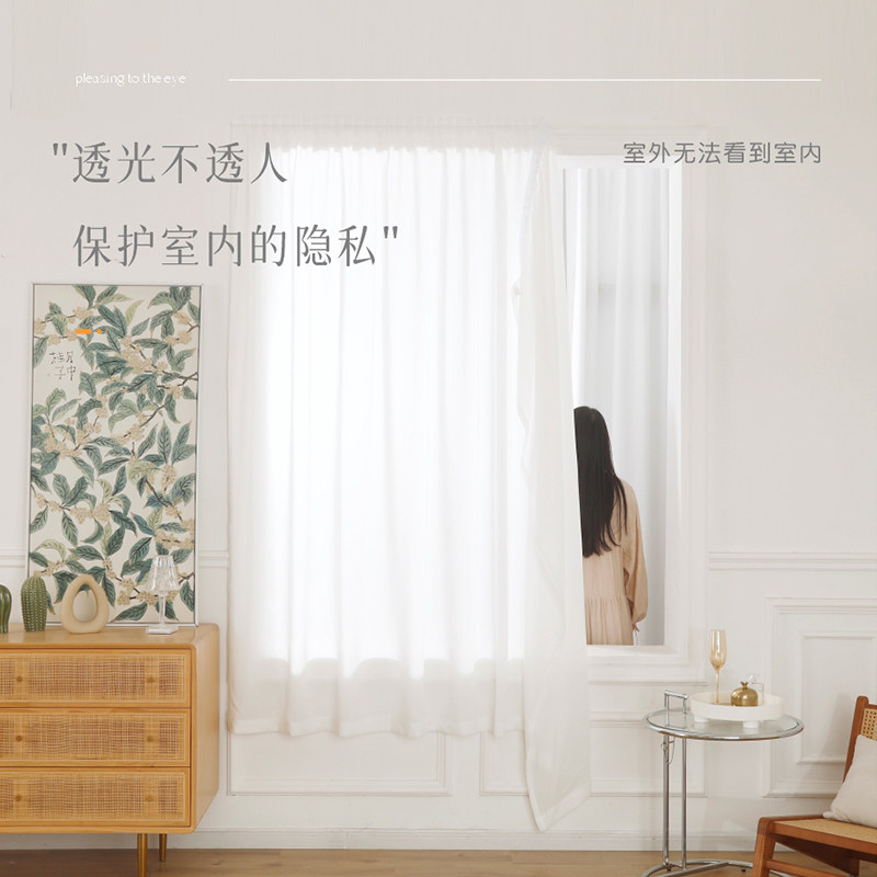 窗帘免打孔安装魔术贴白纱简易粘贴式纱帘出租房小窗户遮挡隔断帘
