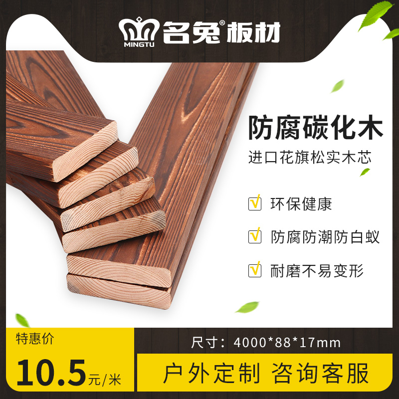 名兔板材 碳化木防腐木美国花旗松户外地板护墙板阳台定制凉亭子