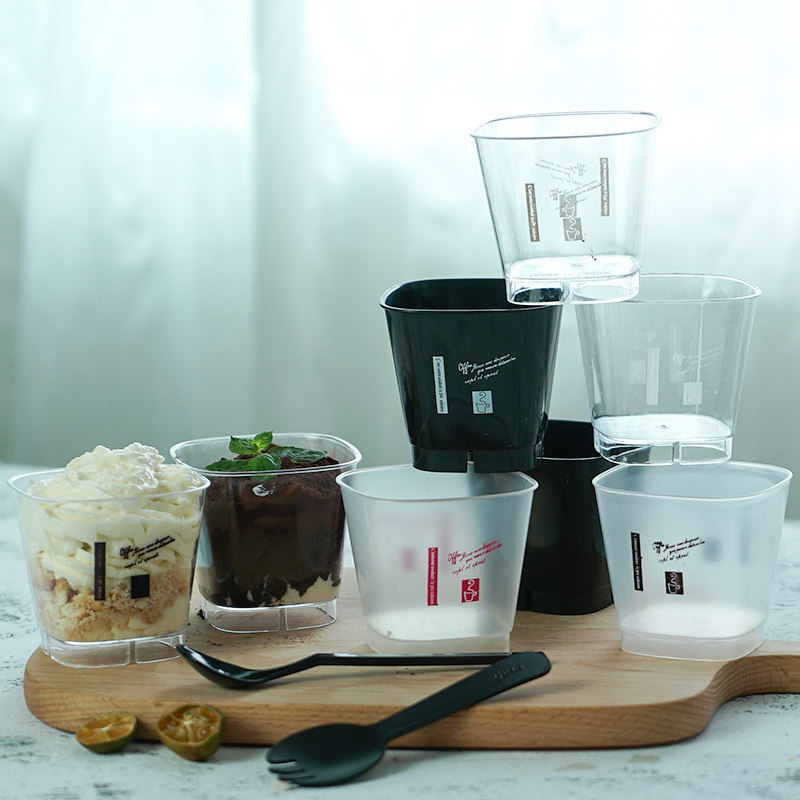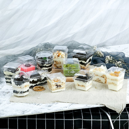 圆形方形一次性慕斯杯带盖木糠杯