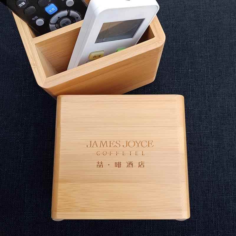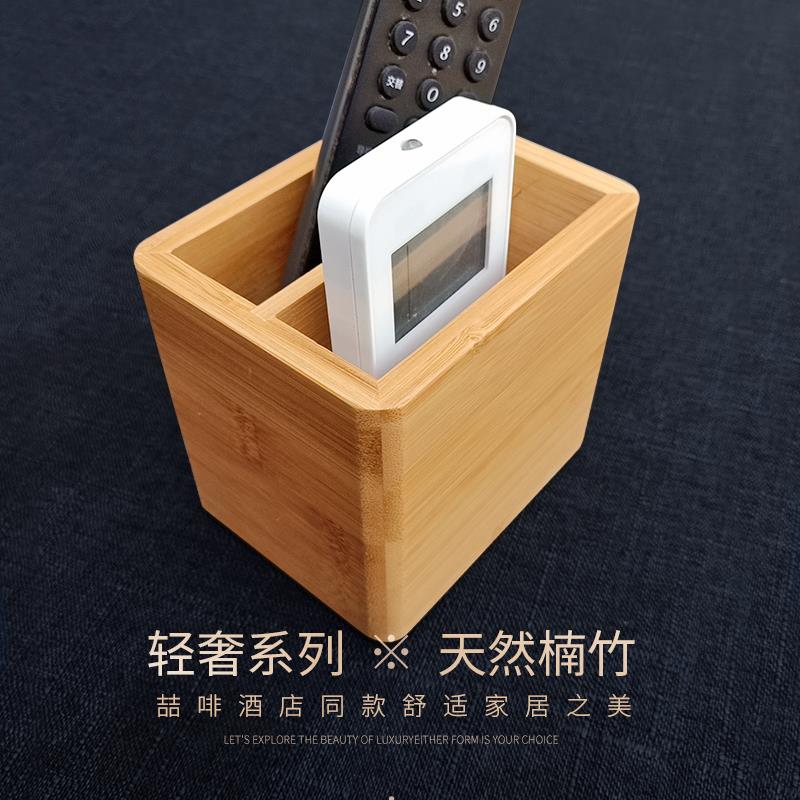 喆啡酒店同款遥控器收纳盒双格宾馆客房楠竹遥控器架可加logo包邮