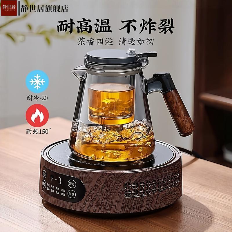 泡茶内胆胡桃木飘逸茶壶新款一键