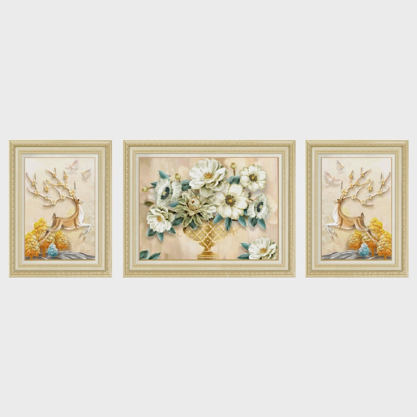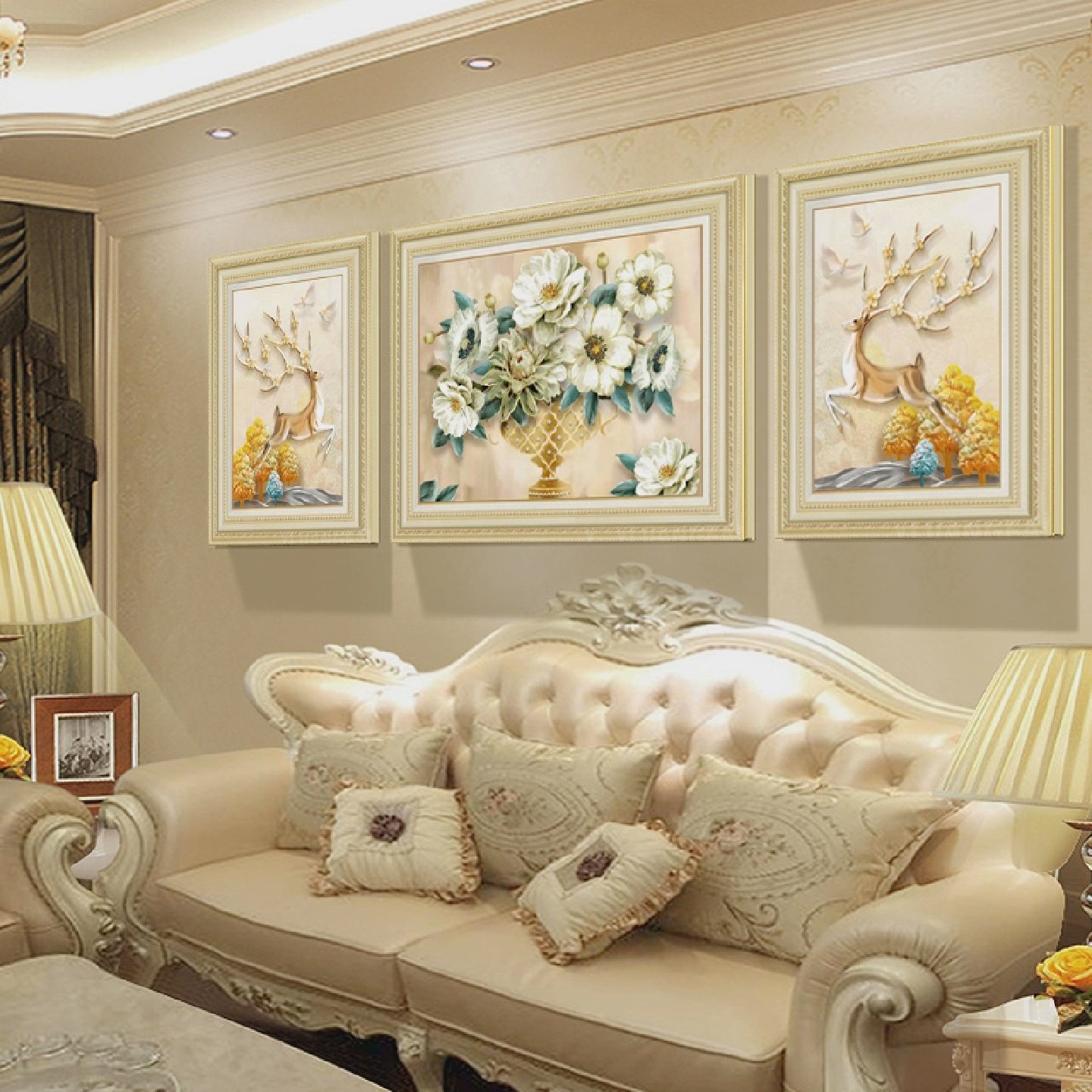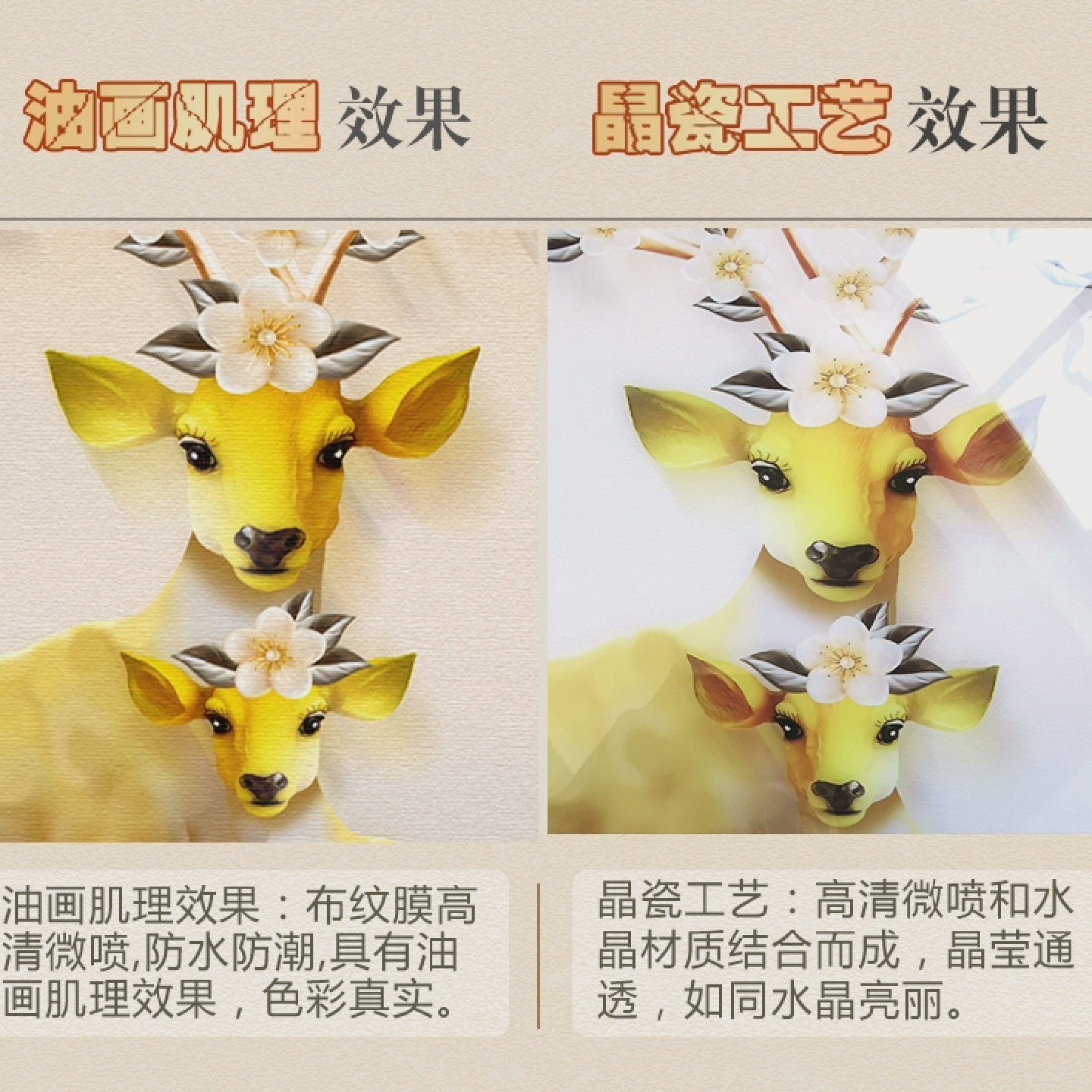 欧式客厅装饰画沙发背景画简欧大气挂画麋鹿墙画晶瓷餐厅三联壁画