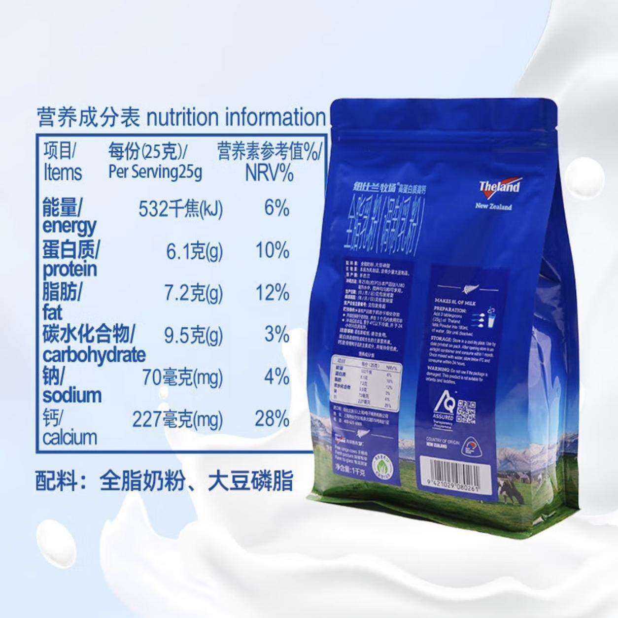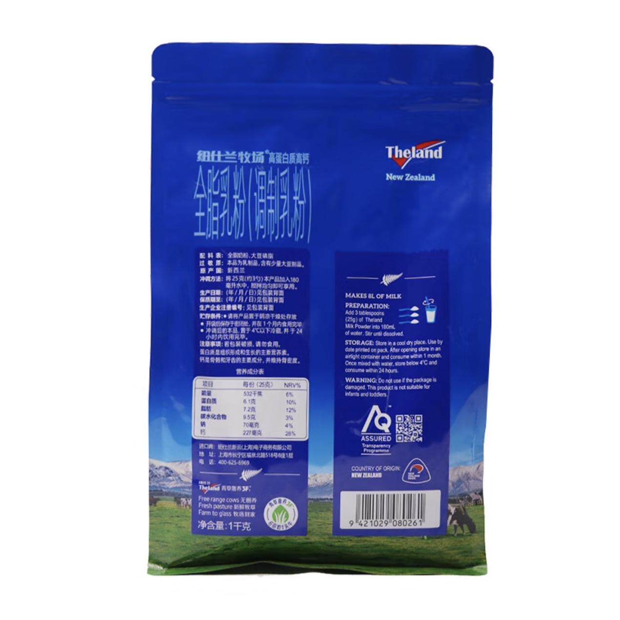 两袋特价新西兰原装进口奶粉纽仕兰全脂乳粉1000g1公斤2袋装补钙