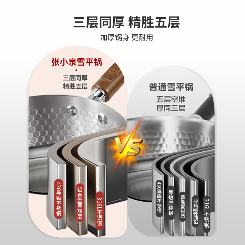 张小泉316L不锈钢雪平锅