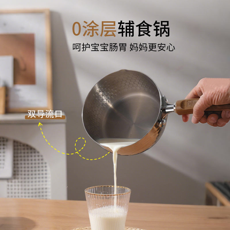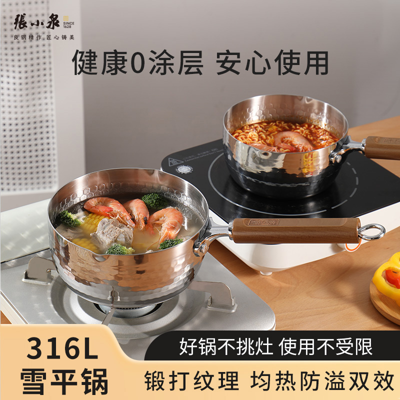 张小泉雪平锅316L不锈钢家用无涂层泡面锅宝宝辅食奶锅一人食汤锅
