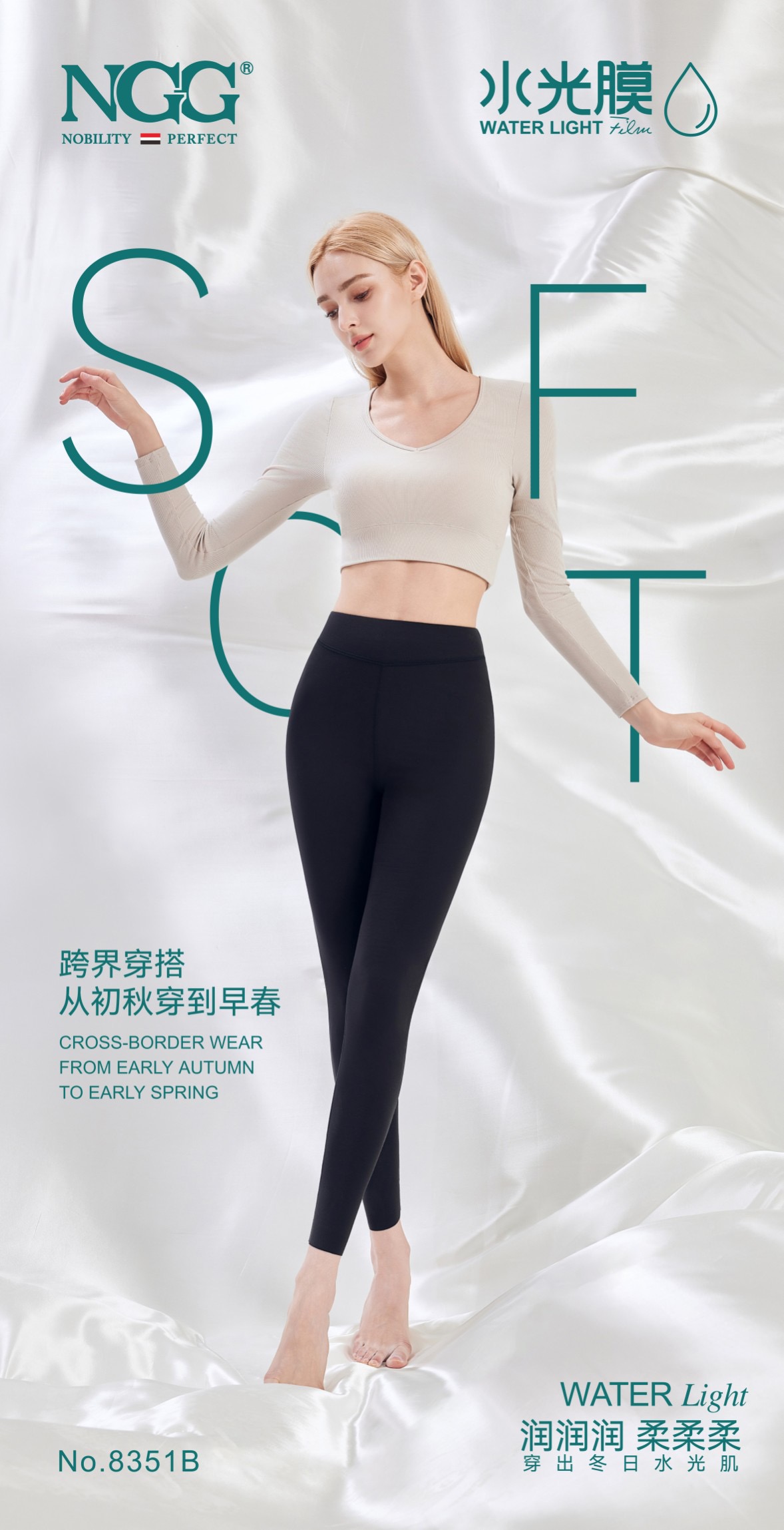 NGG秋冬新女水光膜蚕丝蛋白保暖打底裤磨毛弹力高腰软糯显瘦加肥