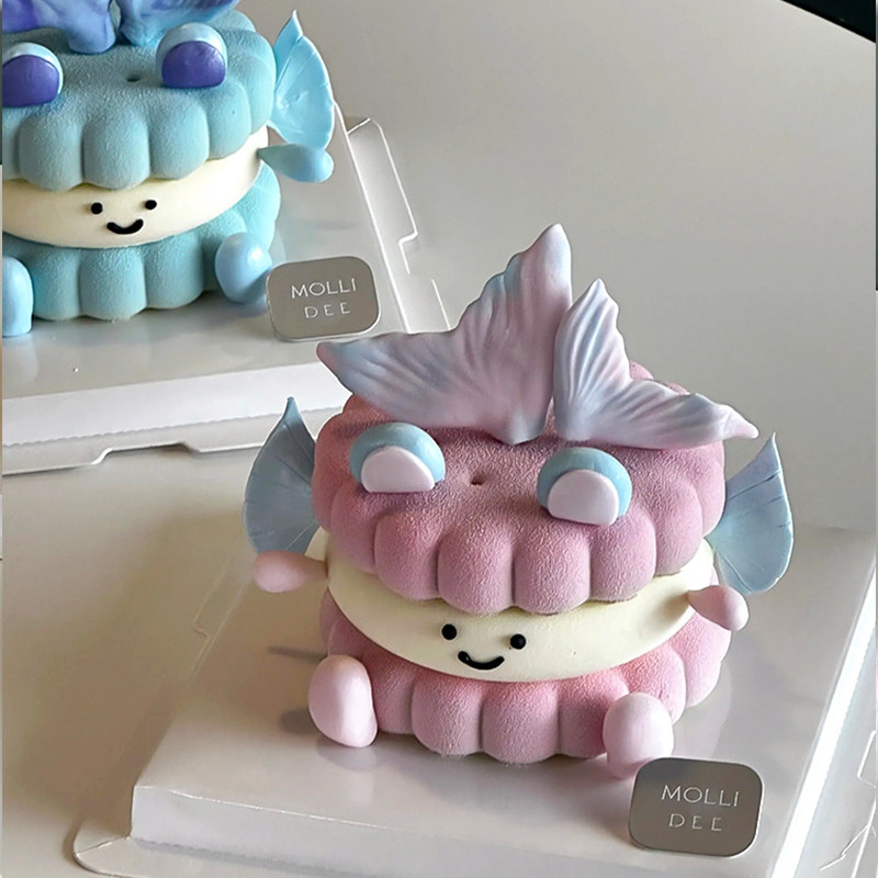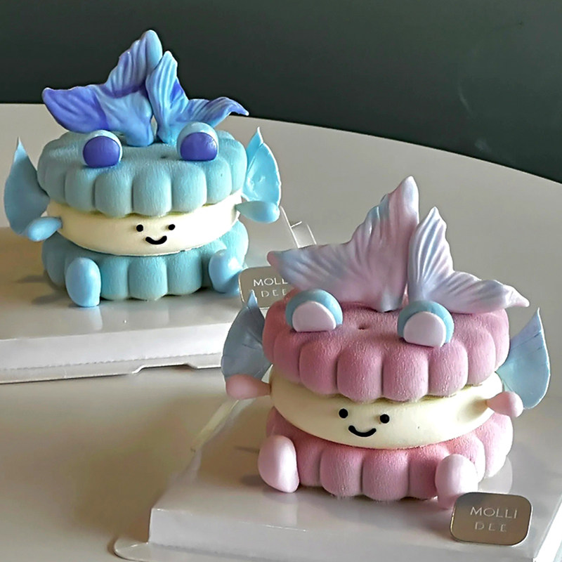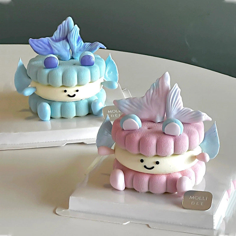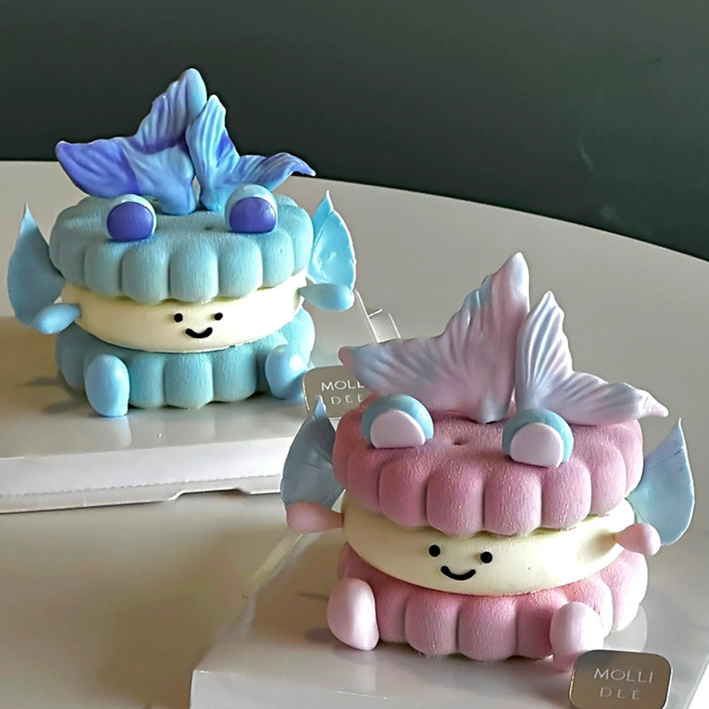 可爱ins双鱼座宝宝emoji蛋糕装饰幻彩翻糖鱼尾夹心饼干氛围感甜品