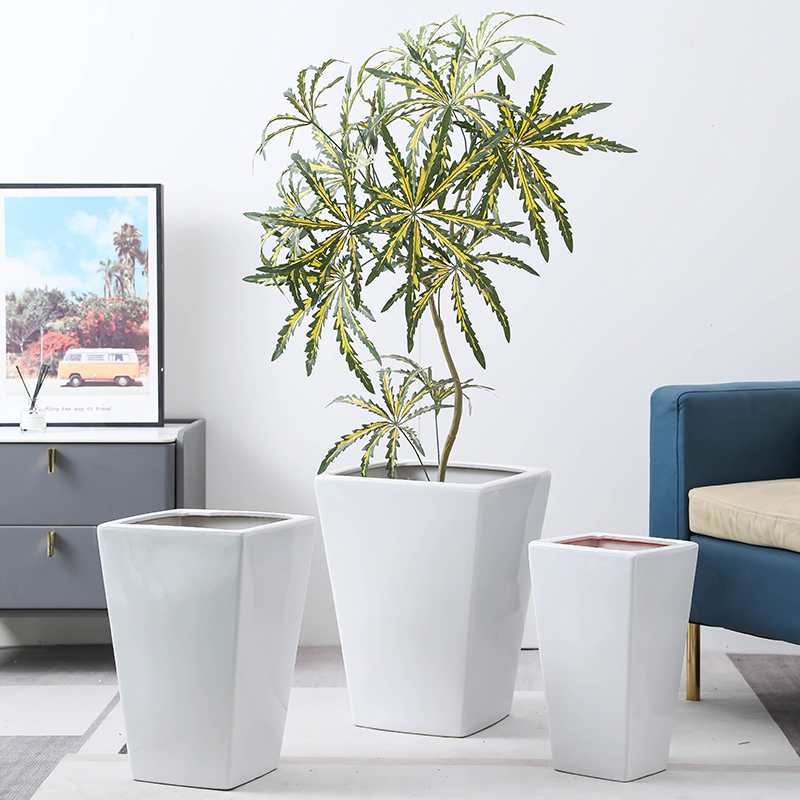 简约白色方形陶瓷花盆家用龙血树客厅落地金钱树兰花千年木高花盆