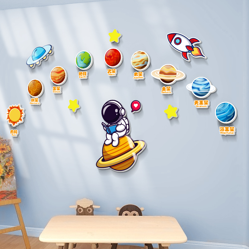宇航员太空人儿童房装饰墙面装饰幼E儿园主题墙贴男孩床头布置贴