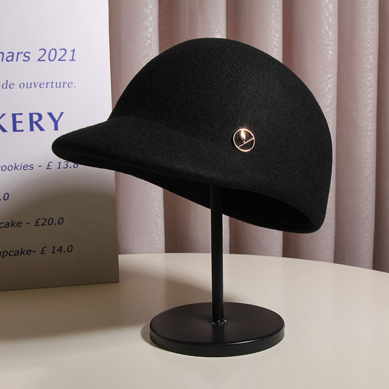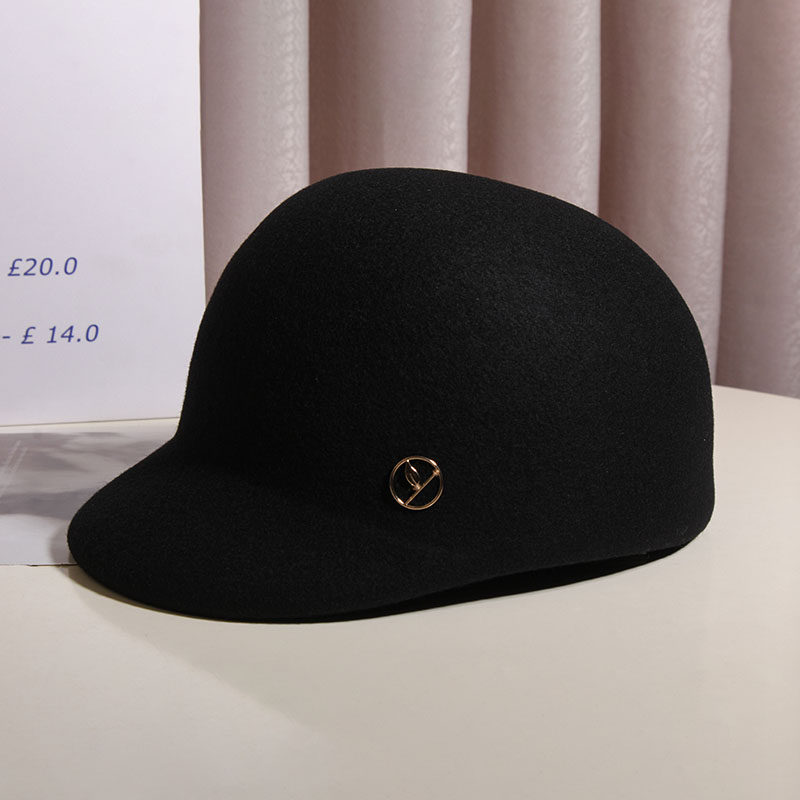 日系名媛轻奢羊毛呢时尚小檐马术帽女秋冬英伦复古骑士帽百搭礼帽