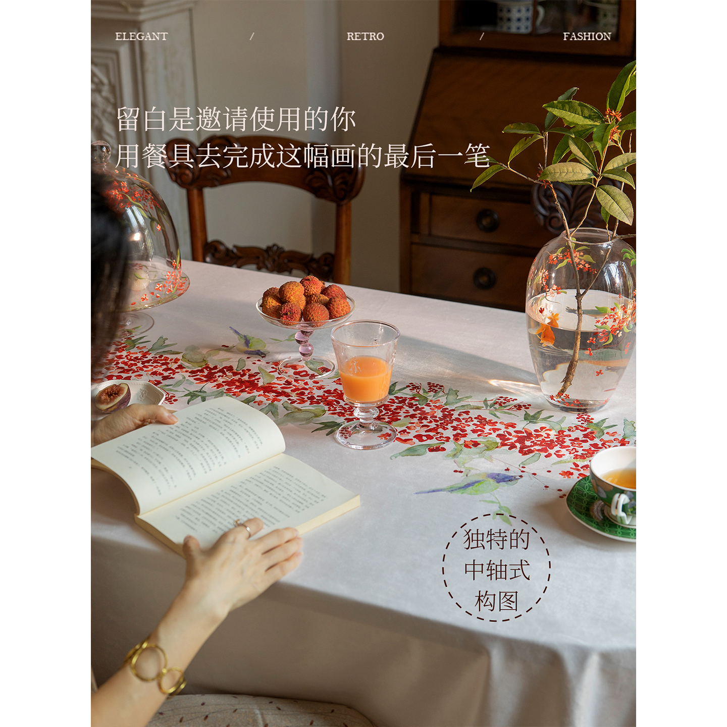 蜡笔派郭俊池联名|红果果系列|丹桂桌布防水餐桌布氛围感茶几布