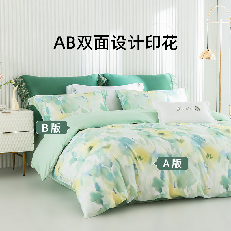 梦洁60支轻奢新疆长绒棉贡缎花卉碎花四件套全棉被套清新田园春夏