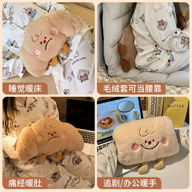 暖手宝吐司热水袋学生宿舍取暖神器毛绒玩偶电暖袋充电防爆可拆洗