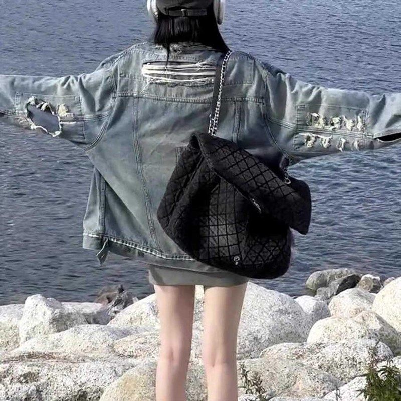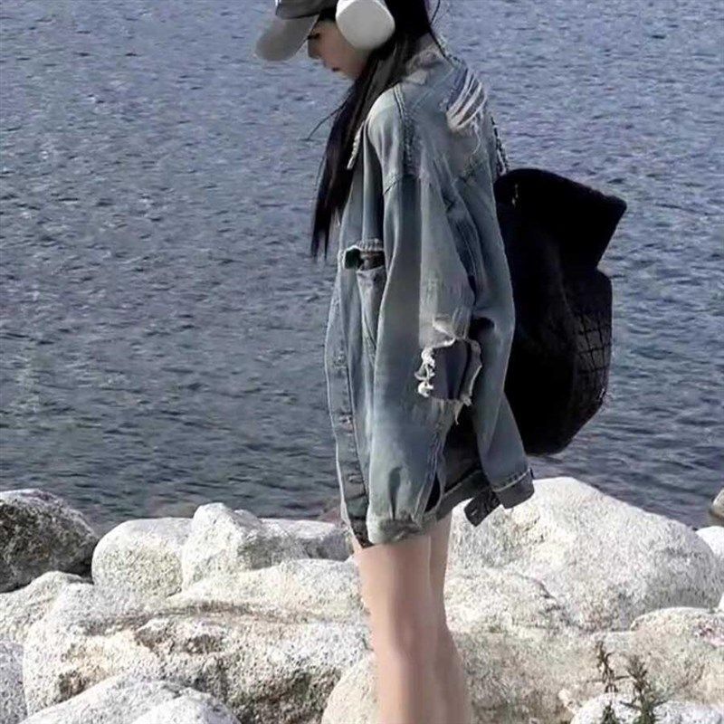 美式复古牛仔夹克外套女春秋2025新款宽松百搭水洗破洞开衫上衣潮