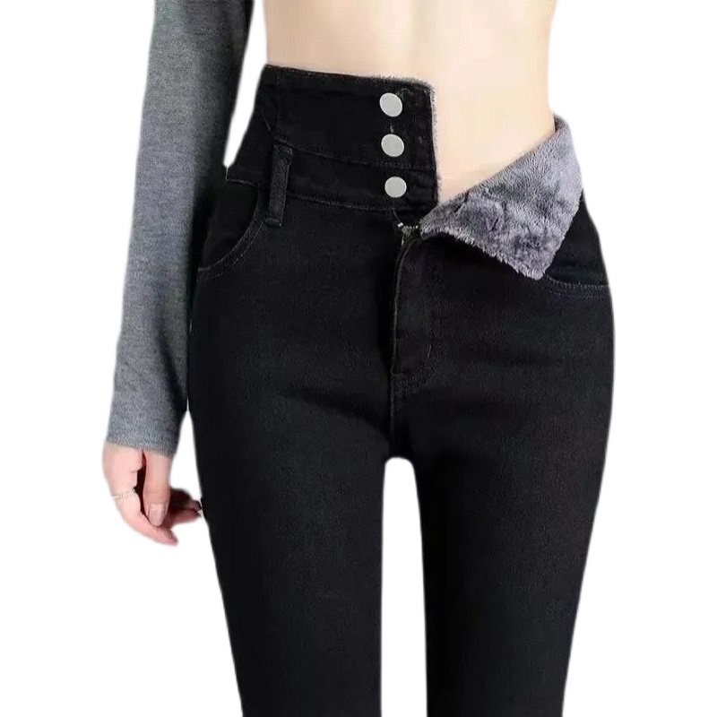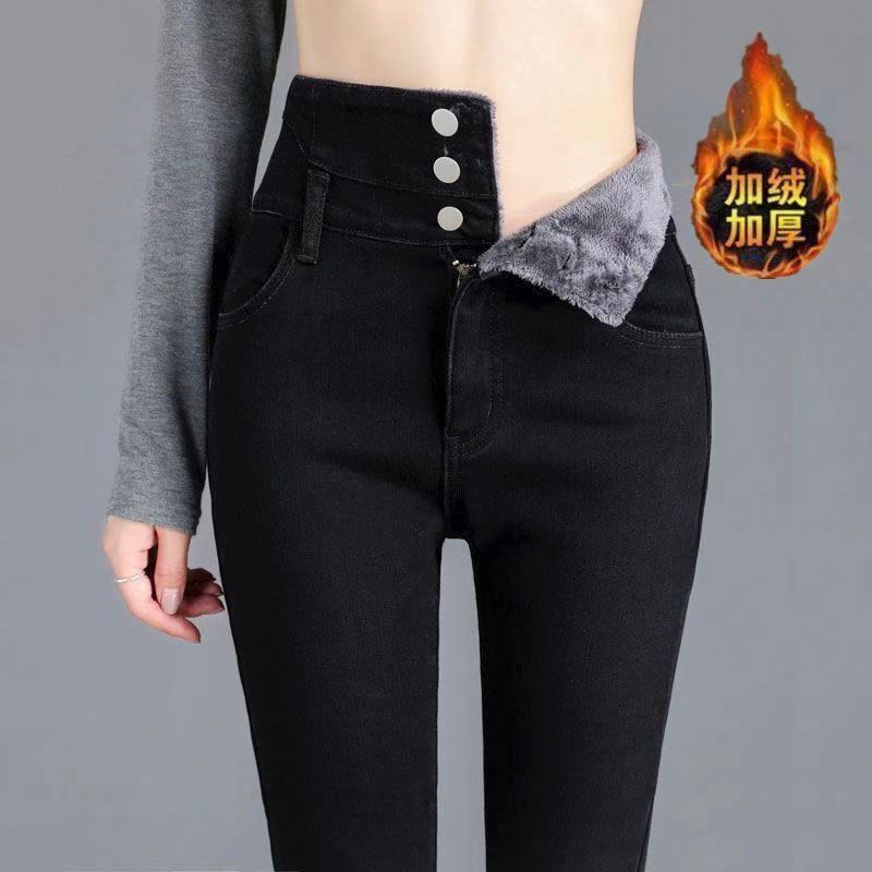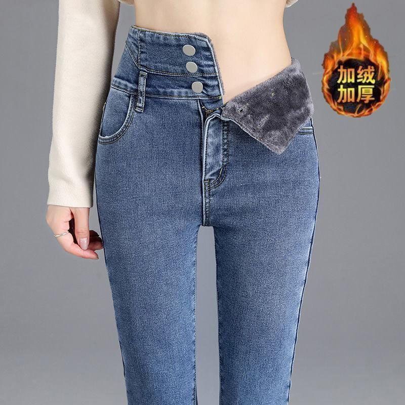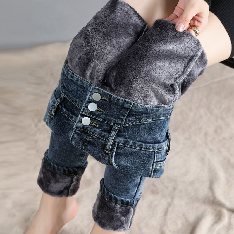 高腰牛仔裤女冬季加绒加厚小脚裤