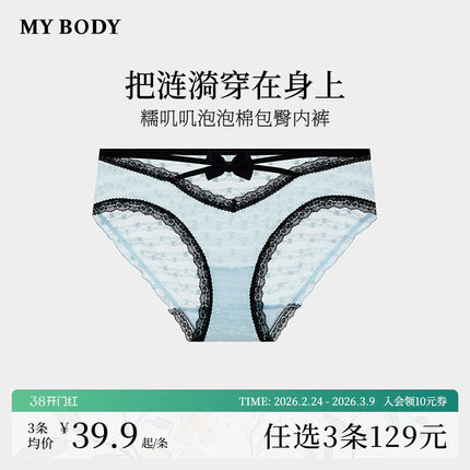 3件129|商场同款MYBODY蕾丝内裤纯欲少女云朵泡泡纱提花三角内裤